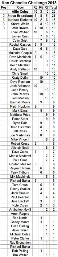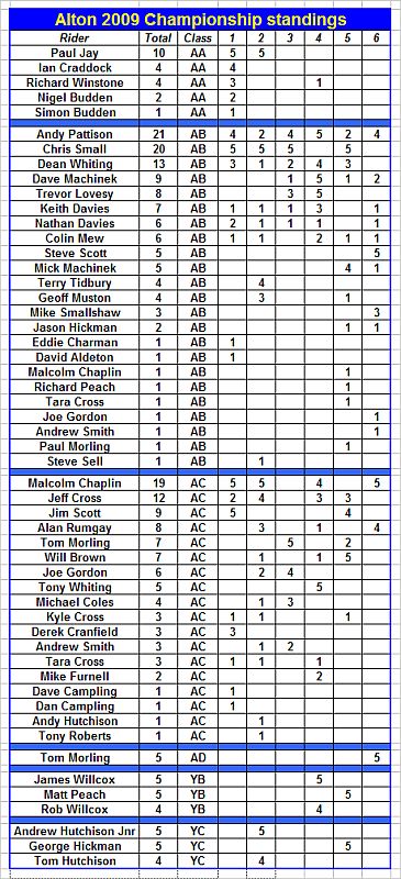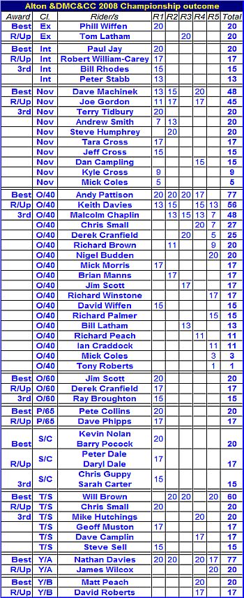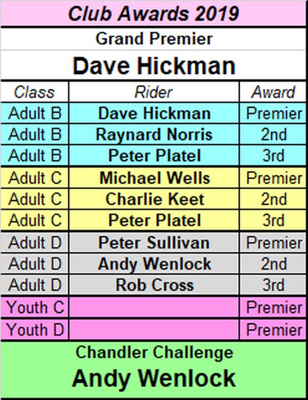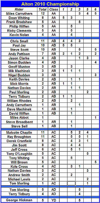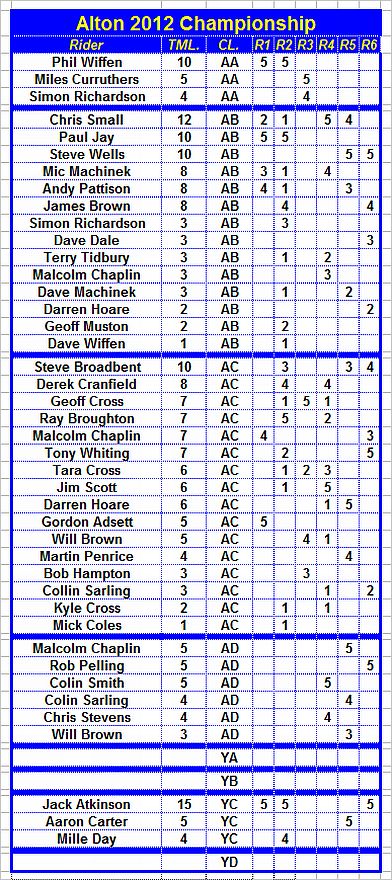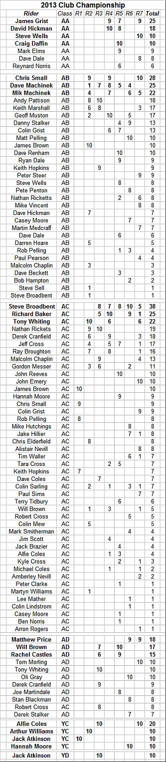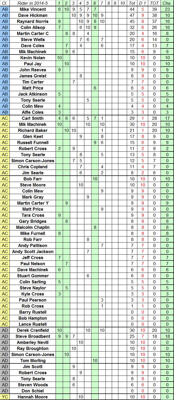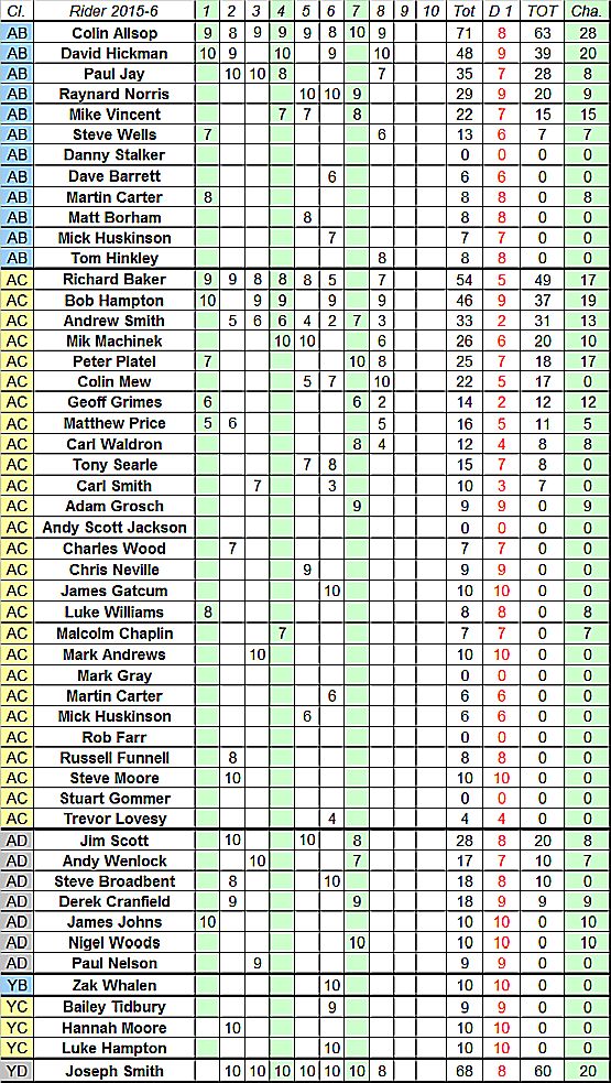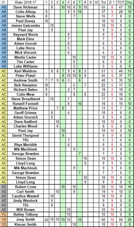 Points are awarded to full members at the time of the Trial who finish the Trial and hand in completed cards.