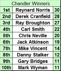 Your worst score in each class is dropped except for the Chandler Challenge.