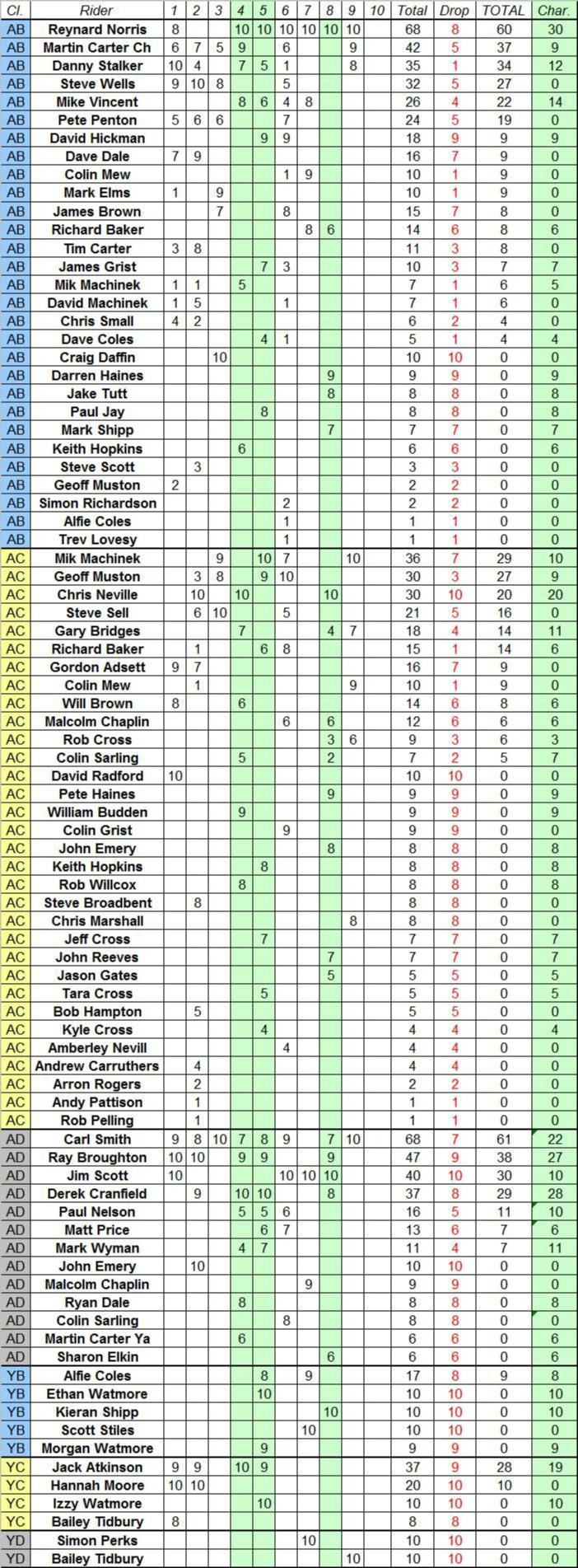 TOP TEN by Class.